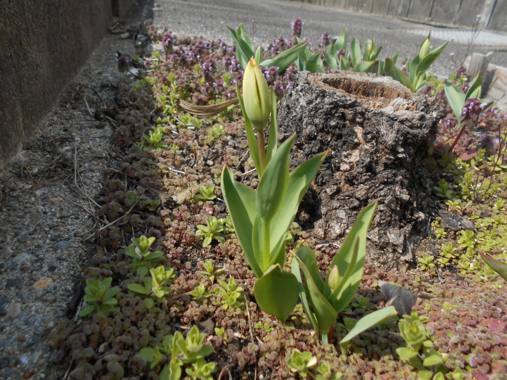 早咲きのチューリップがもう少しで咲きそうな予感🌷