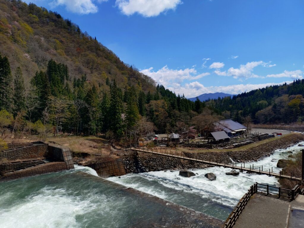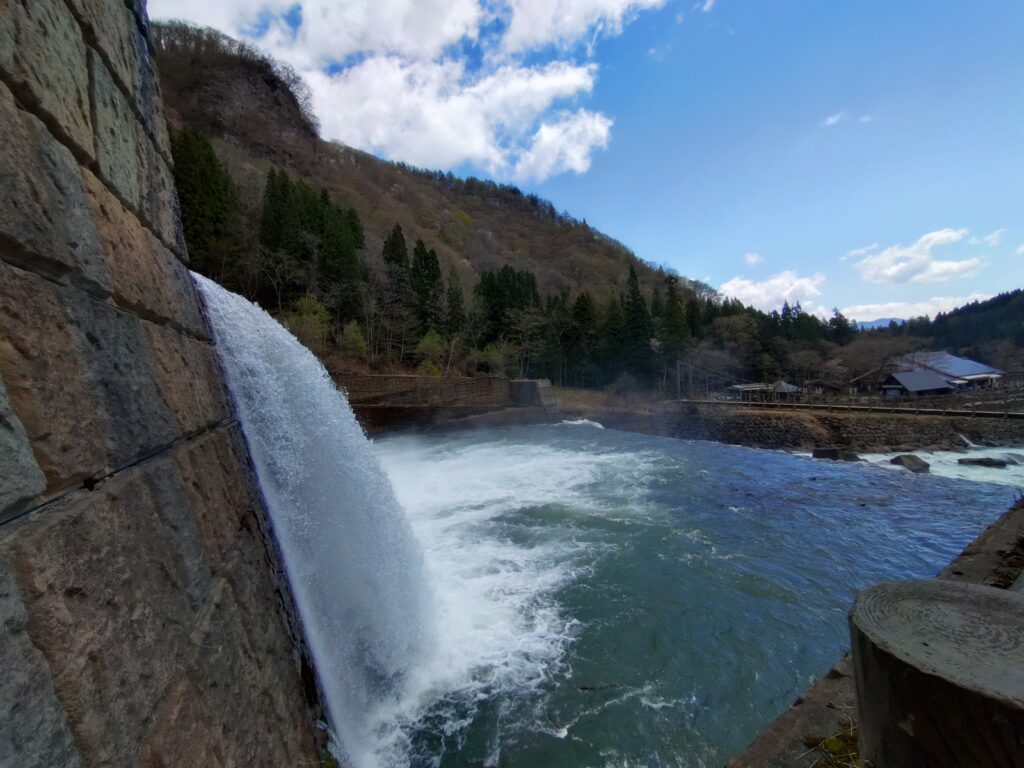 落差55m、水しぶきを上げて落ちるさまは迫力満点!新潟と長野の県境を流れる「関川」にかかる滝です。雪解けの水が大量に流れ込み見応え抜群でした。